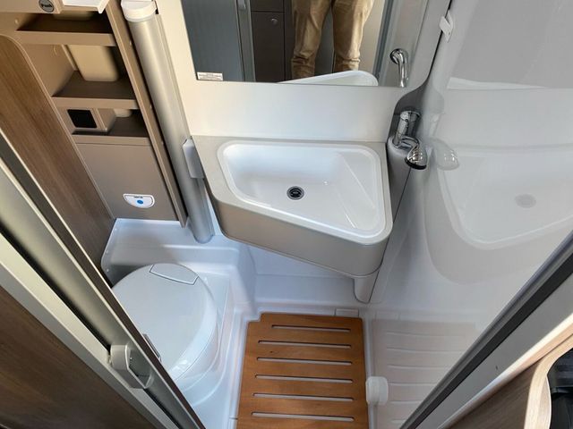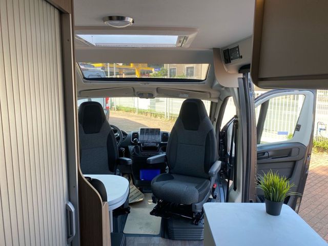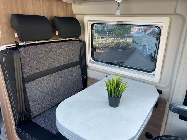 - Fahrgestell / Basisfahrzeug SERIENAUSSTATTUNG Fiat Ducato 3.500 kg - 2.2 Multijet - 103 kW / 140 PS Euro 6 - 6-Gang-Schaltgetriebe Tempomat ABS, EBD, ESP, ESC inkl. ASR und Hillholder ESC Setup Traction+ Start & Stop Funktion inkl. Ladebooster Fahrerairbag Beifahrerairbag Klimaanlage Fahrerhaus manuell Elektrische Fensterheber und Zentralverriegelung im Fahrerhaus Radiovorbereitung mit Lautsprechern Bordcomputer inkl. Außentemperaturanzeige USB Ladegerät (doppelter Anschluss A+C) Multifunktionslenkrad Getränkehalter in der Mittelkonsole DAB Antenne integriert im Außenspiegel Pannen-Set Fix & Go Kit Frontantrieb Scheibenbremsen, Hinter- und Vorderachs-Stabilisator, Umluftheizung, Drehzahlmesser, Servolenkung, höhenverstellbare Scheinwerfer, Wegfahrsperre, Drei-Punkt Sicherheitsgurt Reifen M+S Camping (Schneeflocke) Scheinwerfer mit schwarzem Rahmen Tagfahrlicht im Serienscheinwerfer integriert Fahrer- und Beifahrersitz in Wohnraumstoff Captain Chair mit Bezügen Höhen- und Neigungsverstellung für Fahrer- und Beifahrersitz Fahrer- und Beifahrersitz drehbar Fahrer- und Beifahrersitz mit Lordosenstütze