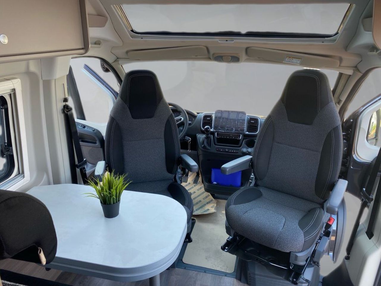 - pro+ Paket CV640+ Optik Paket 1: Stoßfänger lackiert Skid-plate glänzend Schwarz Nebelscheinwerfer Optik Paket 2: Lenkrad & Schaltknauf in Lederausführung Armaturentafel mit Applikationen (Techno-Trim) 16" Alufelgen Bi-Color Dieseltank 90 l Basic Paket: Dachhaube Midi- Heki 70 x 50 cm über Sitzgruppe Duschausstattung (Brausekopf ausziehbar, Duschvorhang, Führungsschiene, Brausehalter) Fenster im Bad Kleiderstange in der Nasszelle Breite Einstiegsstufe Drehplatte für Tischerweiterung an der Sitzgruppe Faltverdunkelung Fahrerhaus Rahmenfenster Markise 4 m (schwarz) Beklebung pro+ LED-Beleuchtung integriert über den Dachschränken Panoramafenster über Fahrer- und Beifahrersitz Heckdachstauschrank umlaufend