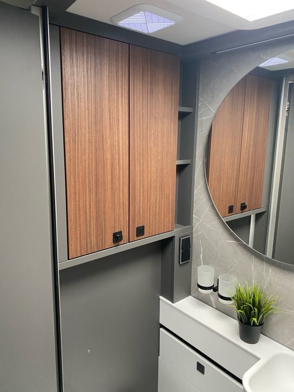 - Wohnkomfort-Paket (Filzverkleidung in Heckgarage, Spannbettlaken nach Maß für Heckbetten individuell an Matratzen angepasst, 4 Kissen mit Bezug, Ambient-Light-System: Mehr-Ebenen Lichtsystem mit dynamischer und individueller Steuerung der Beleuchtung (inkl. Lichttemperatur) sowie stimmungsvoller Sockelbeleuchtung, 4 x 230 V / 2 x Doppel-USB Zusatzsteckdosen)