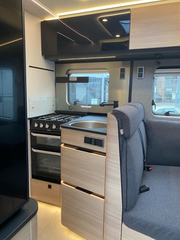 - Wohnkomfort-Paket (Filzverkleidung in Heckgarage, Spannbettlaken nach Maß für Heckbetten individuell an Matratzen angepasst, 4 Kissen mit Bezug, Ambient-Light-System: Mehr-Ebenen Lichtsystem mit dynamischer und individueller Steuerung der Beleuchtung (inkl. Lichttemperatur) sowie stimmungsvoller Sockelbeleuchtung, 4 x 230 V / 2 x Doppel-USB Zusatzsteckdosen)