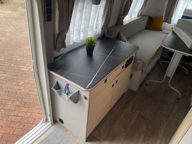 - Komfort-Paket (Fliegenschutz-Rolltür (gesamte Türhöhe), bedienfreundlich durch seitliche Führung, Komfort-Plissee-Rollos, Steckdosenpaket (2 x 230 V Steckdosen und 1 x USB-Doppelsteckdose), Abfalleimer in Eingangstür integriert, Spülenabdeckung mit Schneidebrett für Edelstahlspüle, Zusätzlicher Vergrößerungsspiegel mit Magnethalterung)