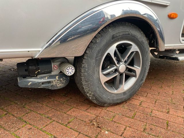 - Design-Paket I (Bumper aus Edelstahl, Chrompaket mit Außenanbauteilen in Chrom und Radlaufblende sowie Rückleuchten in Retrodesign, Steinschlagschutzblech, Leichtmetallfelgen ERIBA 5-Stern-Doppelspeiche, anthrazit)