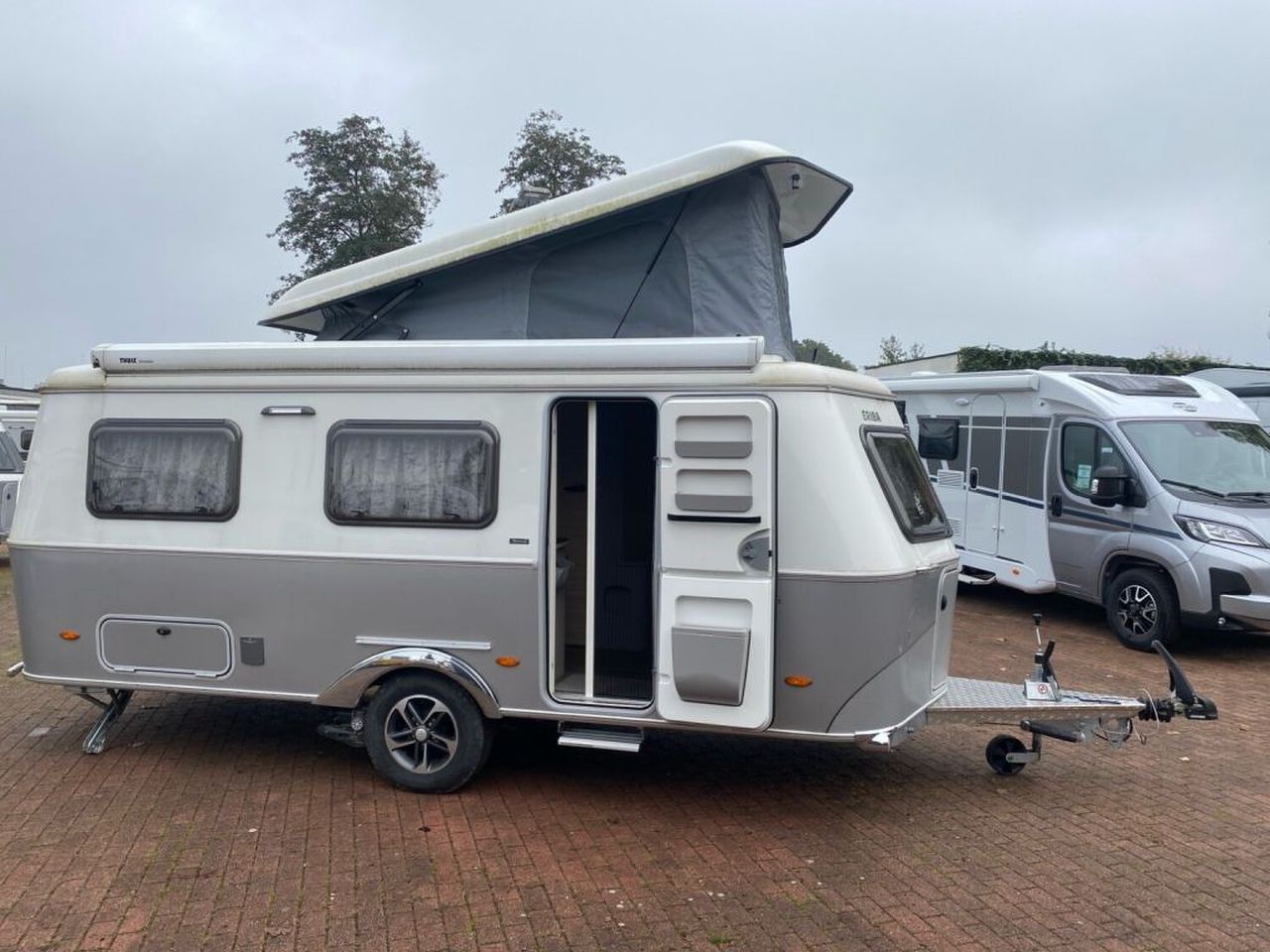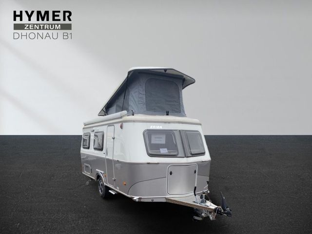 - Ausstattungslinie Urban (Außenfarbe White Silver) (Seitenwände, Bug und Heck in Glattblech, Farbe White Silver, Möbeldekor Tindari, Ambientelicht XL mit indirektem Licht oberhalb der Dachstauschränke und zwei zusätzliche ERIBA Multifunktions-Akkuleuchten, 2 Kissen mit Bezug)
