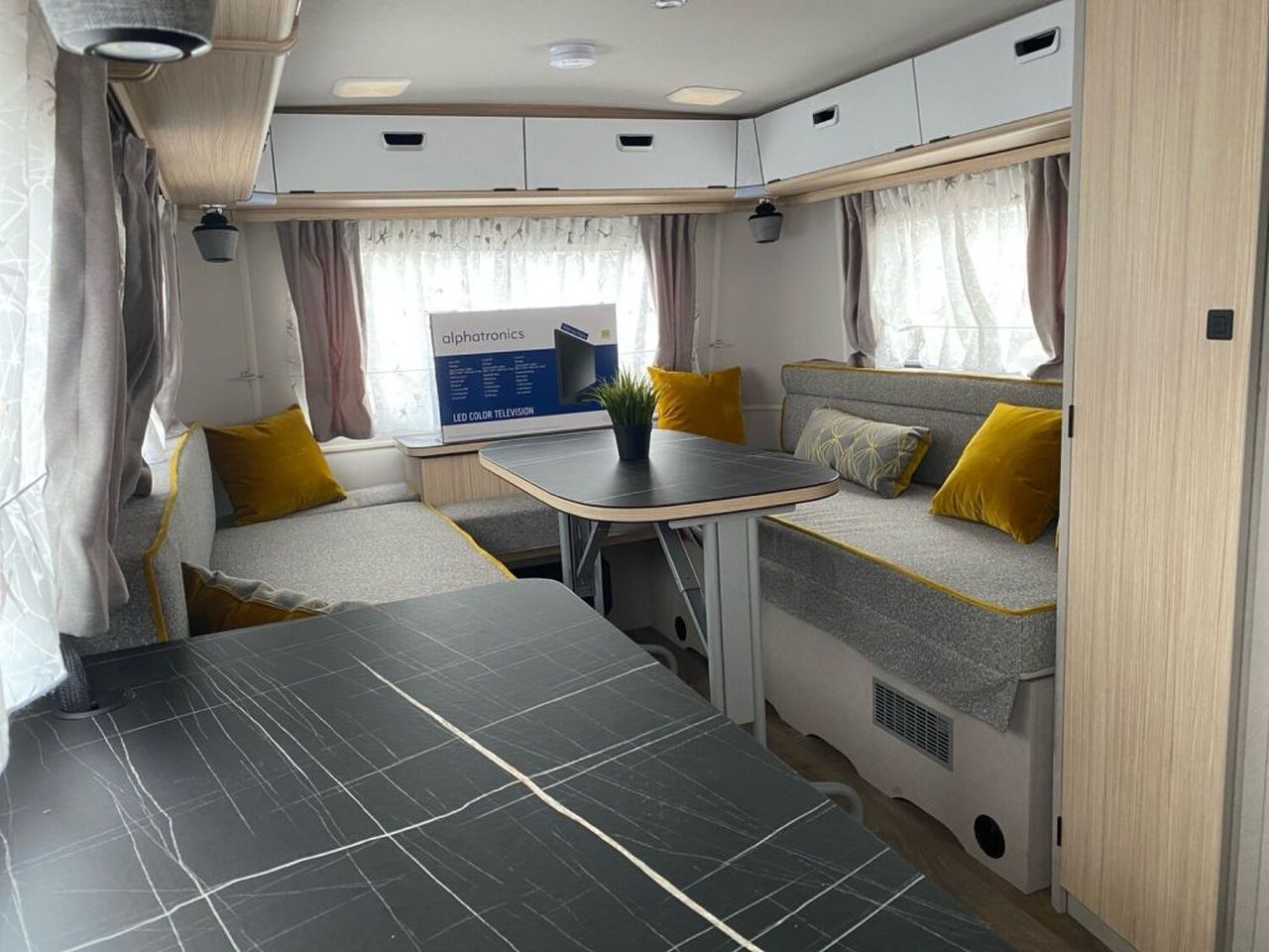 - Multimedia-Paket II (Radio Entertainmentsystem: DAB, Audio Streaming über Wi-Fi, Bluetooth, Apple AirPlay & Digitale Signalverarbeitung, Lautsprecher mit Verkabelung, DAB & DSP Modul, FM/AM/DAB-Antenne inkl. Splitter und innenliegende Verkabelung, 22 LED TV inkl. DVD-Player, Triple-Tuner, DVBT-2 Empfang und Standfuß, Universal-Vorzeltsteckdose (230 V, 12 V, TV) inkl. TV-Vorverkabelung im Innenraum)