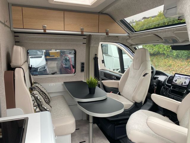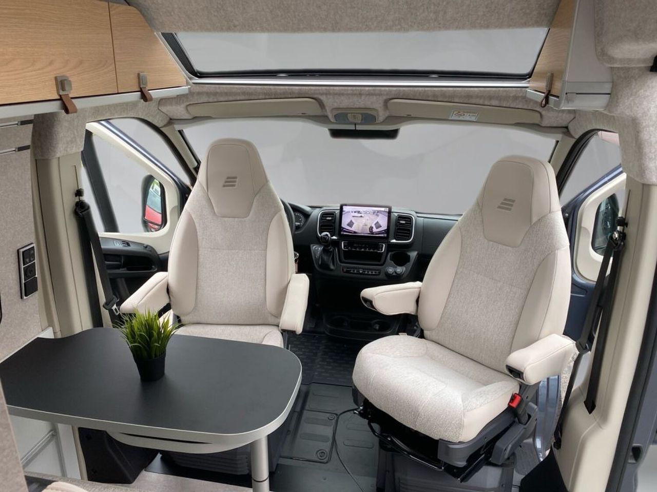 - Wohnkomfort Paket (Skyview Fenster Fahrerhaus inkl. Verdunklung, Ambient-Light-System: Mehr-Ebenen Lichtsystem mit dynamischer und individueller Steuerung der Beleuchtung (inkl. Lichttemperatur) sowie stimmungsvoller Sockelbeleuchtung, Wohnwelt "HOME" (2 Kissen und Stofftasche), Spannbettlaken nach Maß für Heckbetten individuell an Matratzen angepasst, Einlegeboden mit Korkoberfläche)